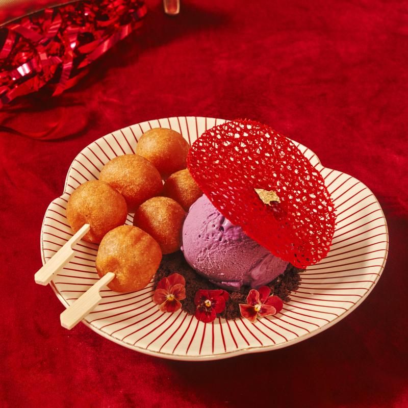 Crispy fried potato balls paired with velvety Ube gelato and crunchy Ube crumbles.