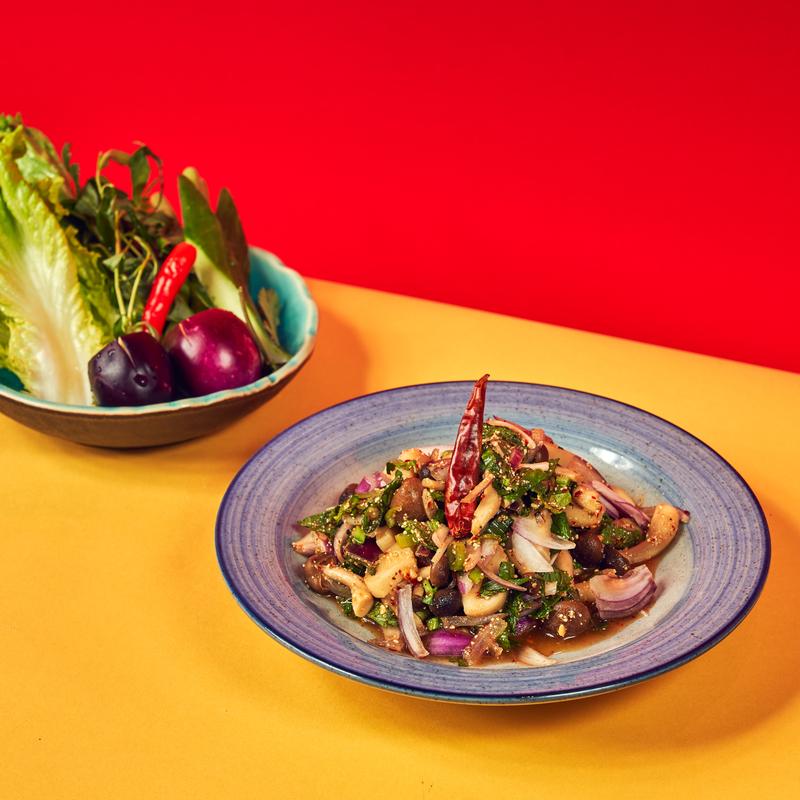 Perfectly charred, medium-rare rib-eye marinated in Isan spices, served with a fiery Jaew sauce that’ll make your taste buds roar.