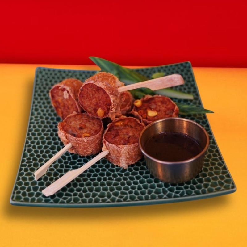 Crispy Isan-style fried chicken rolls stuffed with sweet corn, aromatic Thai herbs and fiery bird’s eye chili wrapped in golden soy sheet served with our signature spicy tamarind dipping sauce- a vibrant balance of tangy, sweet and bold Northeastern Thai flavors.