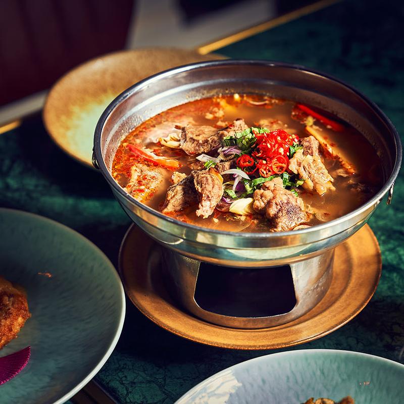 Stewed beef in hot and spicy broth, lemongrass, galanga, chili, shallot, culantro.